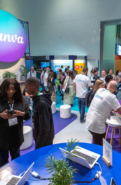 Two years after a hugely successful introduction to Bett audiences, a lot had happened. Canva wanted to reintroduce itself to attendees in a memorable, meaningful, brand-appropriate way. Bringing to life the creativity, accessibility and sustainability that are all so core to the company, whilst showcasing its updated brand palette.