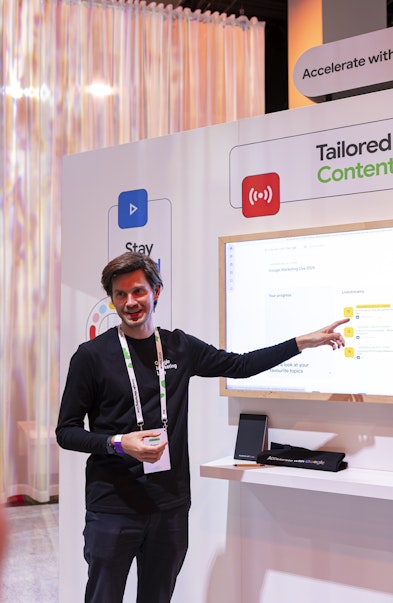 At the heart of the experience sat The Hub, a vibrant space built around Google’s four S’s: Streaming, Scrolling, Shopping and Searching. Seven people-powered product demos brought Google’s AI-powered Ads solutions to life, giving customers the chance to see innovation in action.